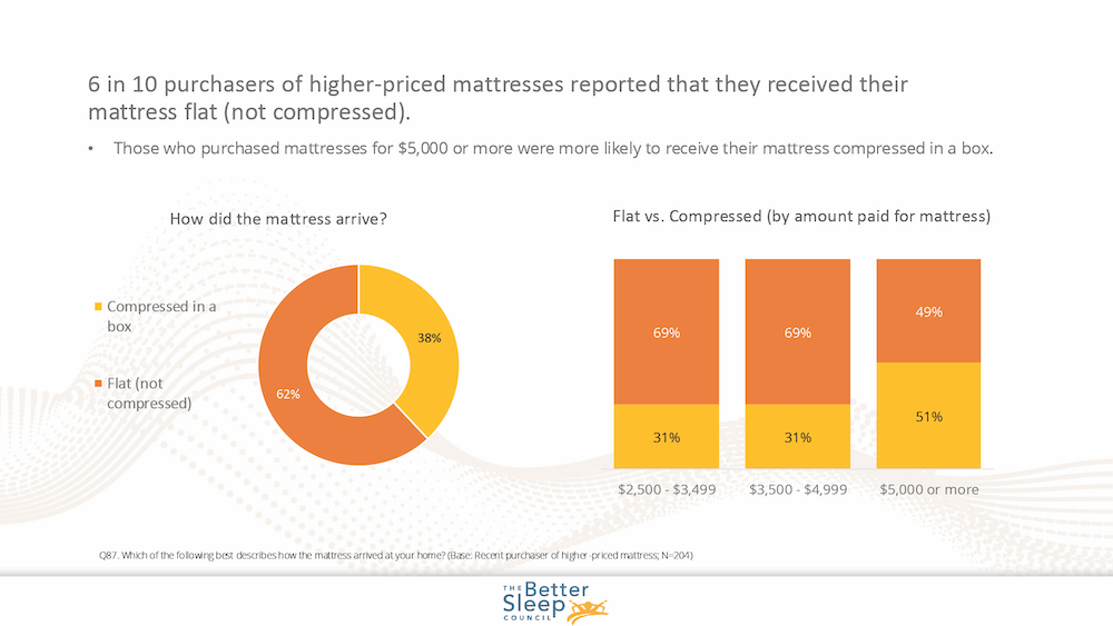 First, the less surprising statistic: 62% of all higher-priced purchasers received their mattresses flat while 38% got their bed compressed in a box.